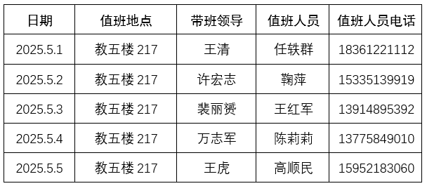 2025年五一假期值班表