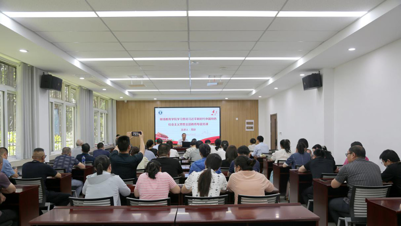 在学习贯彻习近平新时代中国特色社会主义思想主题教育全面深入开展之际,6月9日下午,公司党委书记周跃以“学习贯彻习近平新时代中国特色社会主义思想,促进公司高质量转型发展”为题,为全院教职工讲授专题党课。